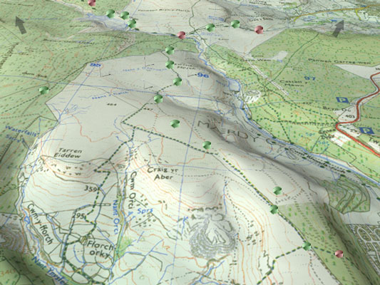 Click small green arrow on path to move towards windfarm, or rotate around and click yellow arrows to move away